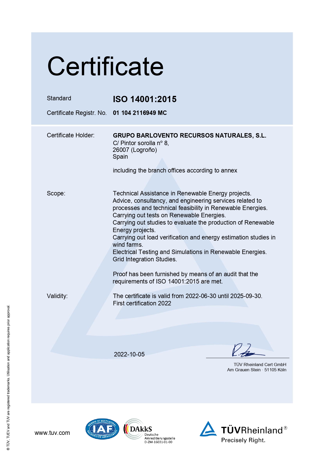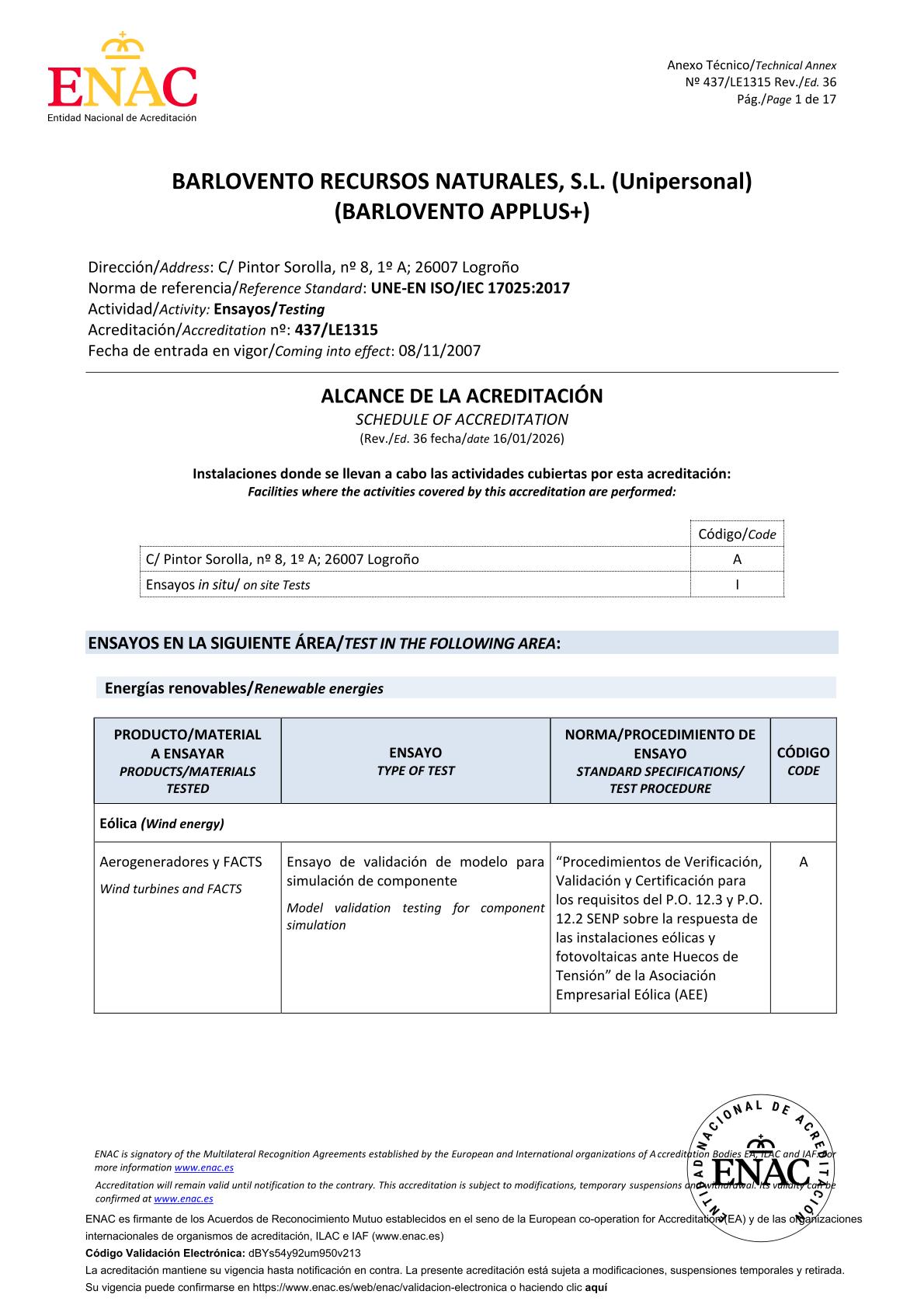 Pueden comprobar el alcance y emplazamiento de estas certificaciones en los anexos técnicos adjuntos.