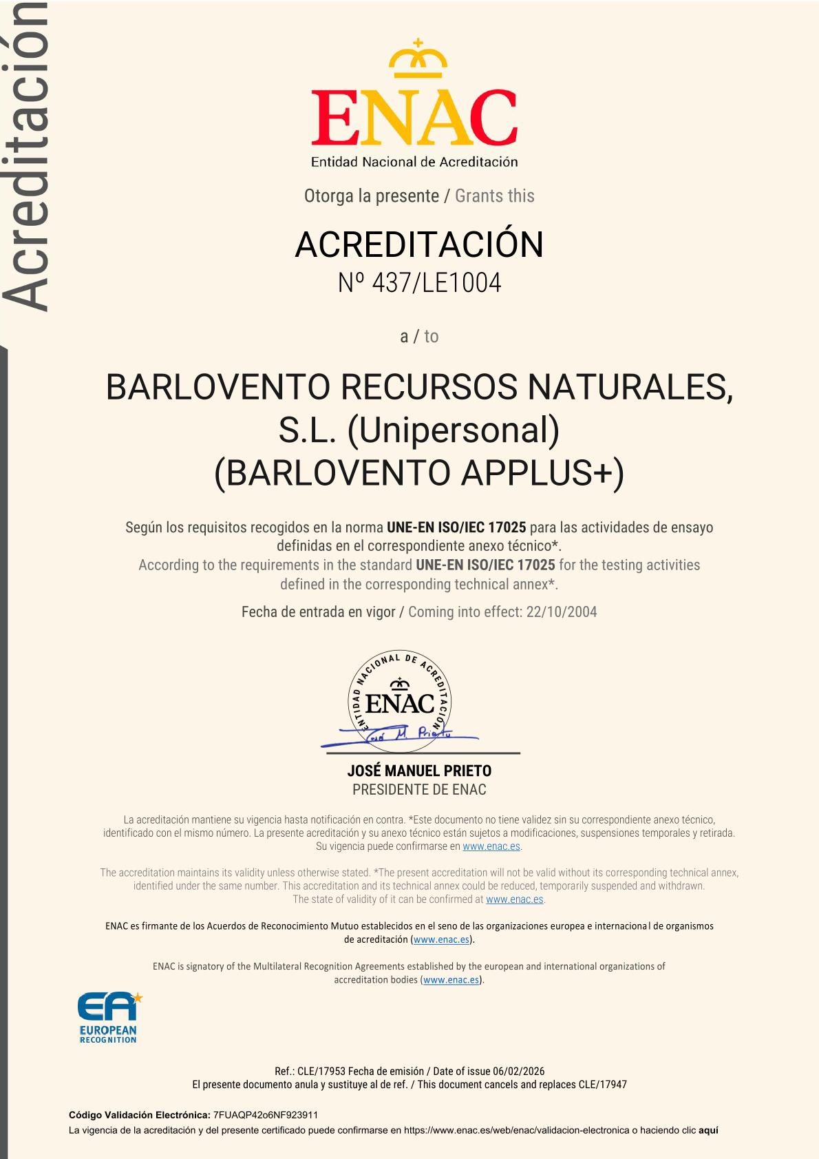En el ámbito de la calidad, los laboratorios de Barlovento Applus+ disponen de acreditación según la norma IEC-17025 para una variedad de pruebas. Asimismo, son miembros de la red de laboratorios MEASNET, para asegurar la más alta calidad de las mediciones en el sector eólico, y forman parte de IECRE.